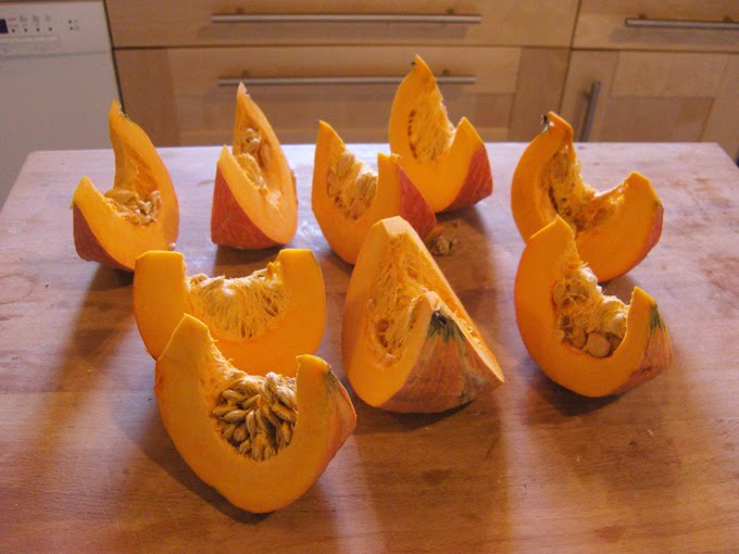 D'abord, et ce n'est pas le plus facile, il faut couper le potiron en tranches.